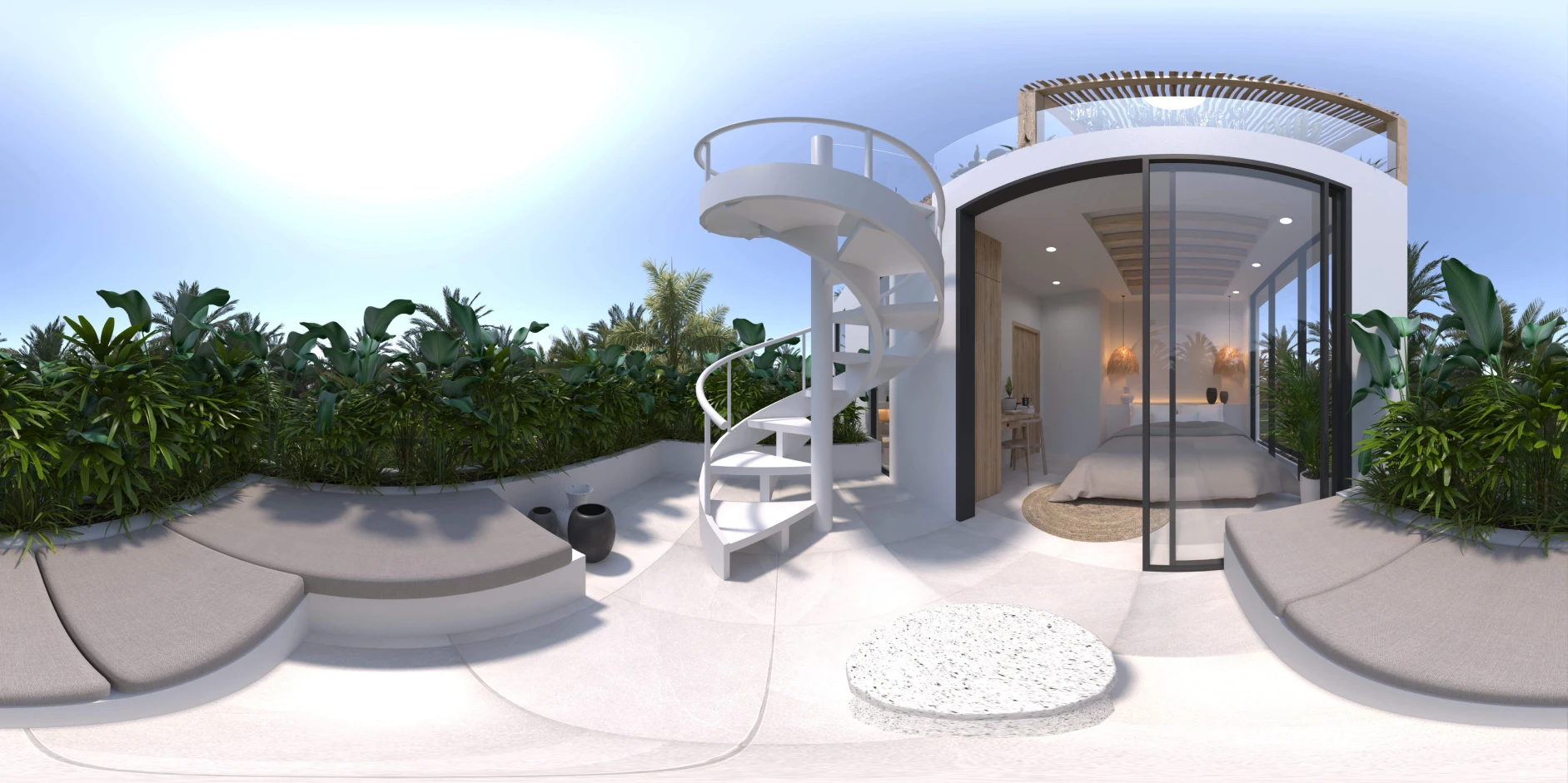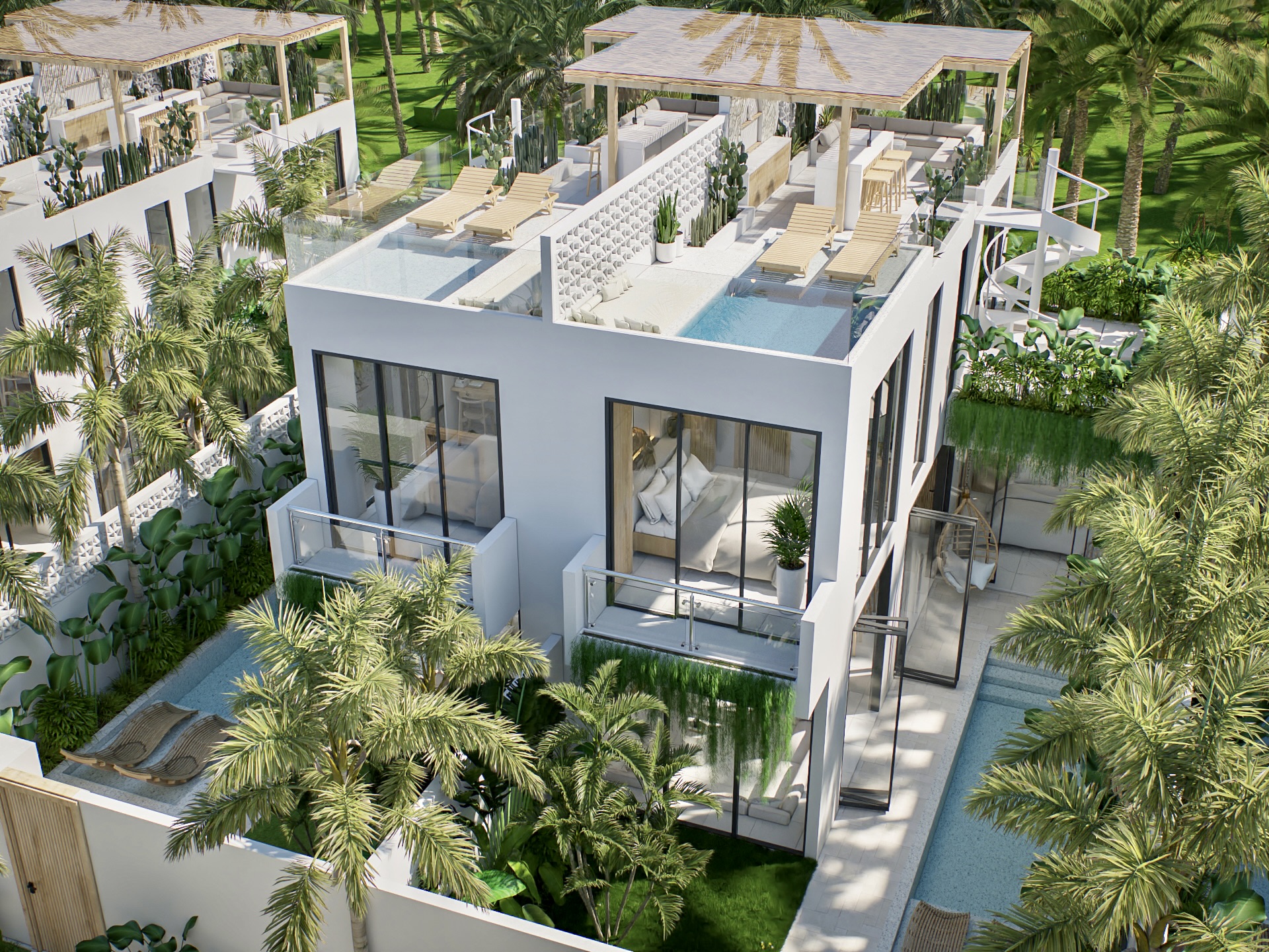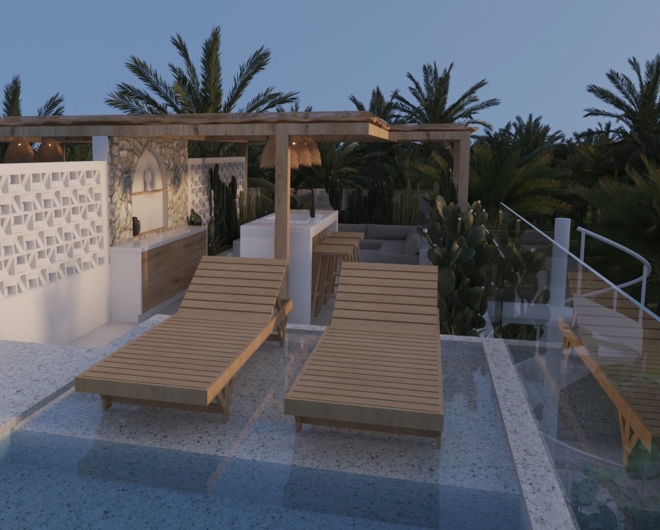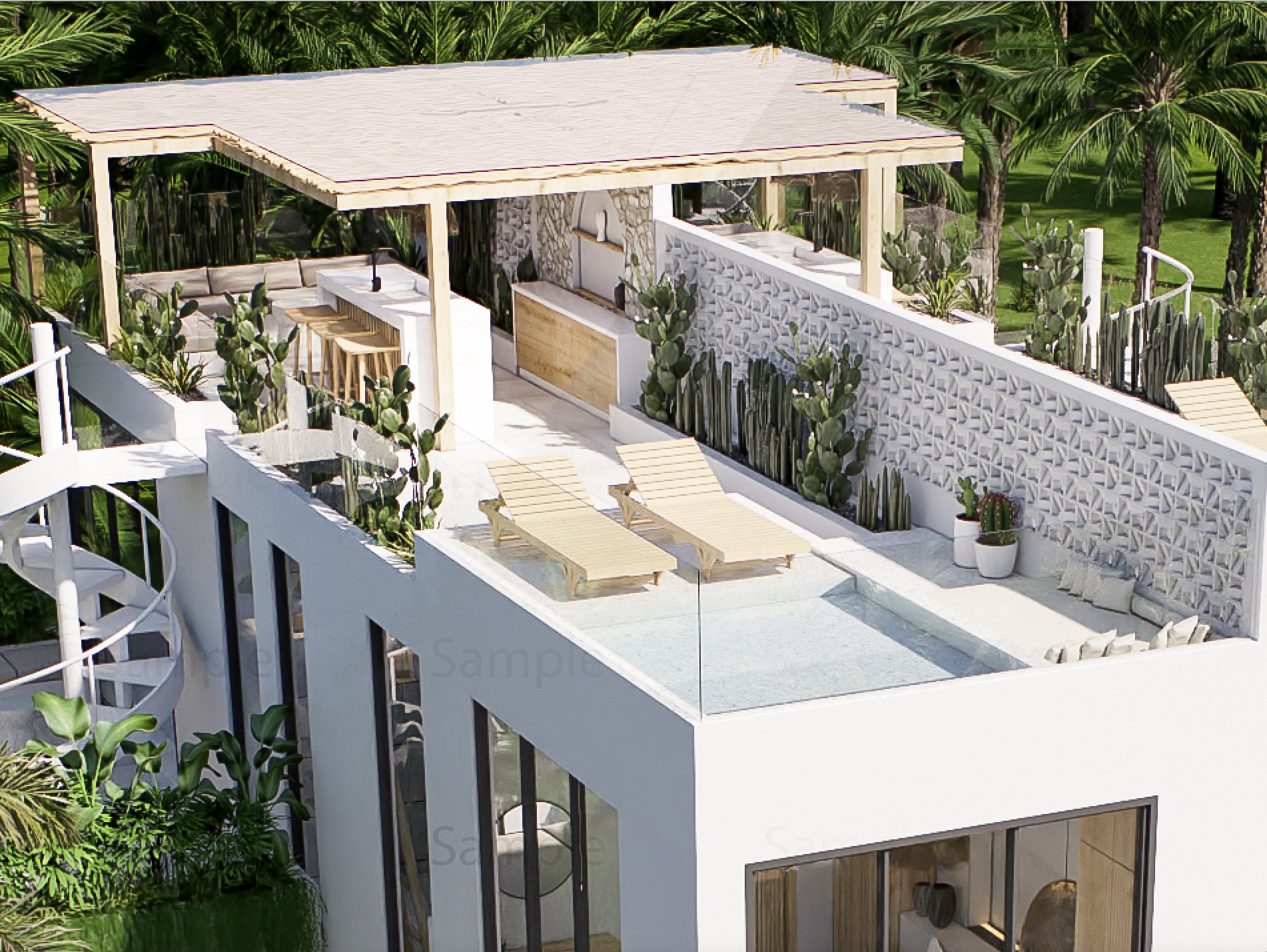 El Agua Villas has been designed on a modern boho-chick interior that creates unique atmosphere. The open living area, along with inviting pool provide a blend of confort and style. The Rooftop space provides perfect vantage point with a secondary ambiance.