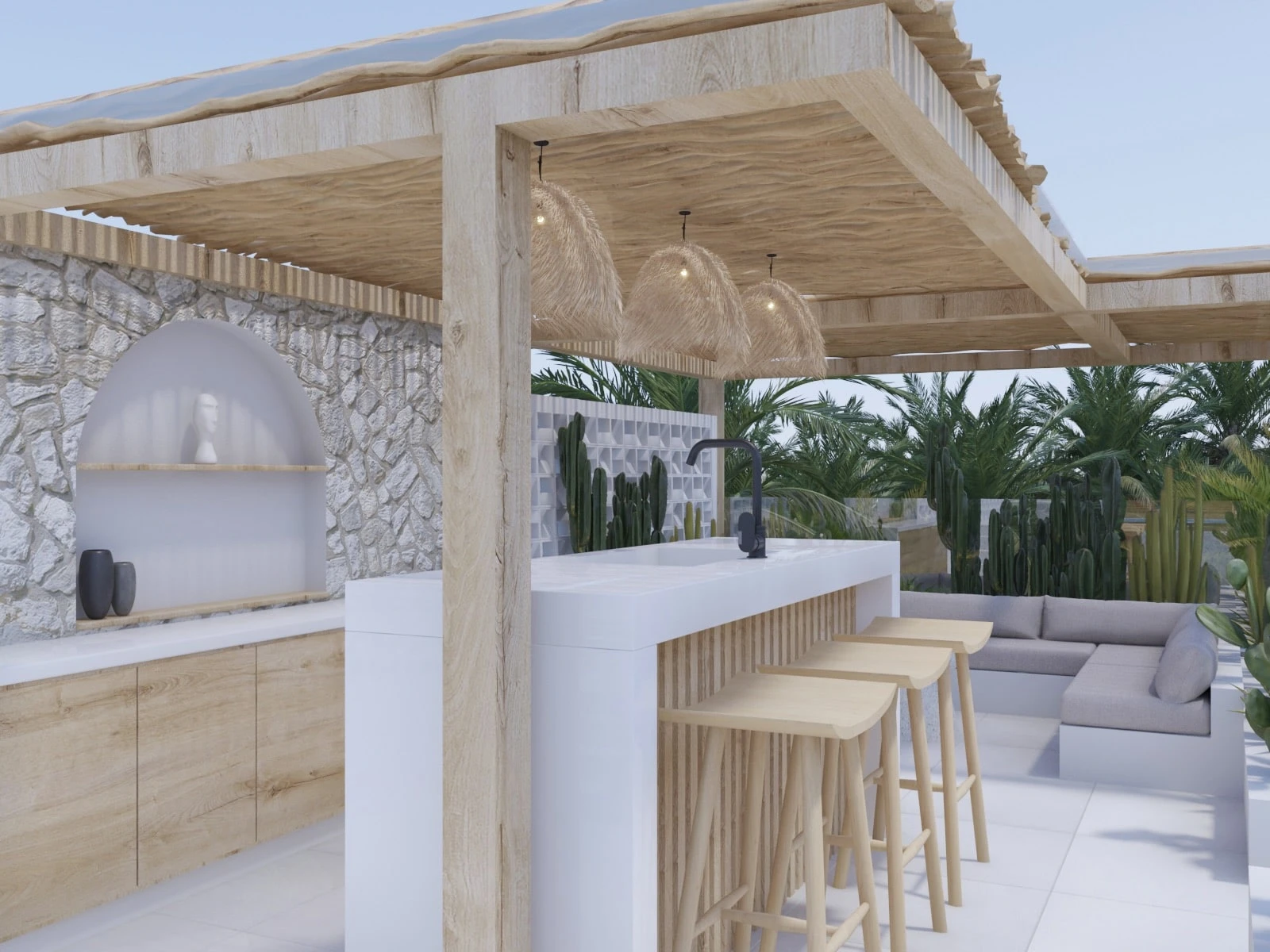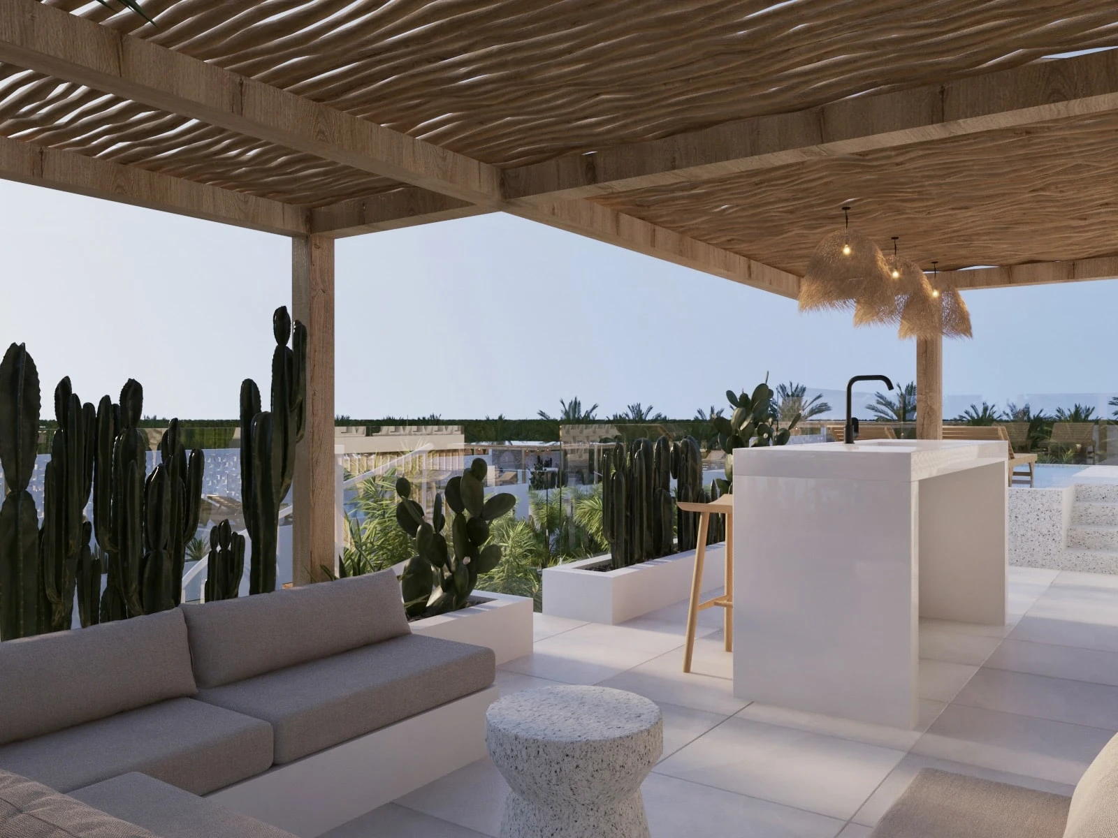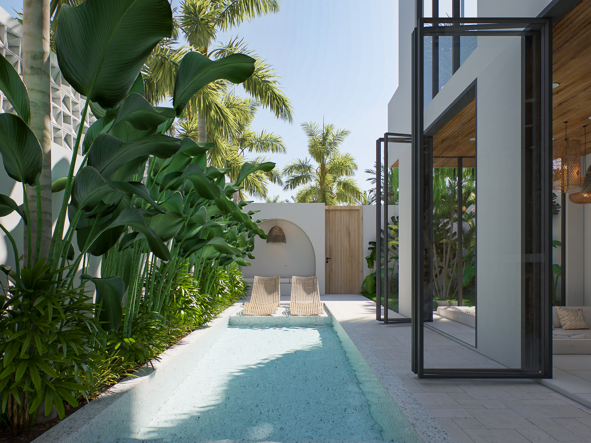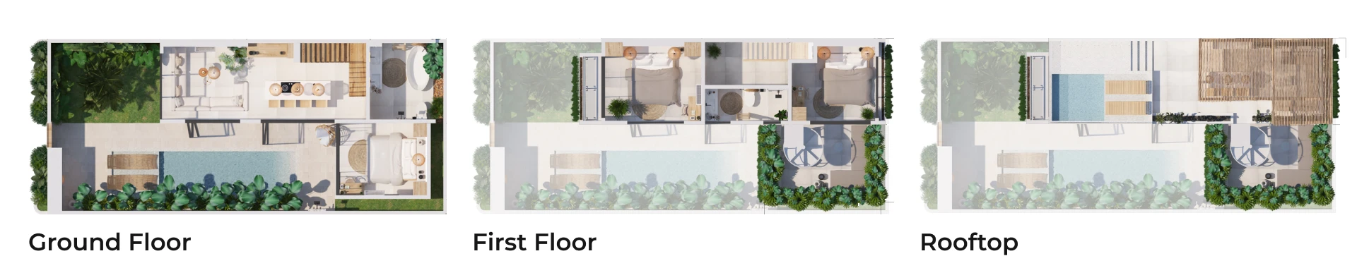 El Agua Villas has been designed on a modern boho-chick interior that creates unique atmosphere. The open living area, along with inviting pool provide a blend of confort and style. The Rooftop space provides perfect vantage point with a secondary ambiance.